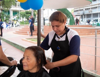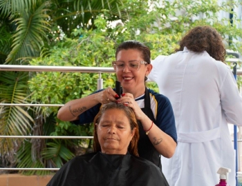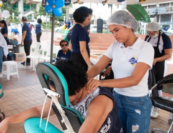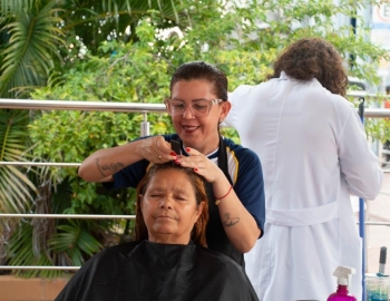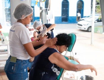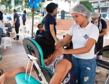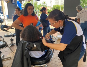 Complementando as ações, a turma do curso de Capacitação em Cabeleireiro Profissional ofereceu cortes de cabelo feminino básico, com 47 atendimentos, agregando valor estético e elevando a autoestima das mulheres atendidas durante o evento.