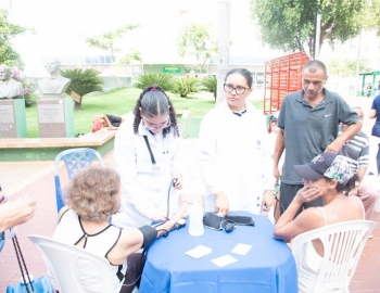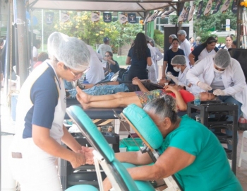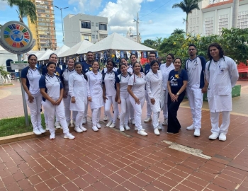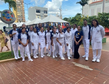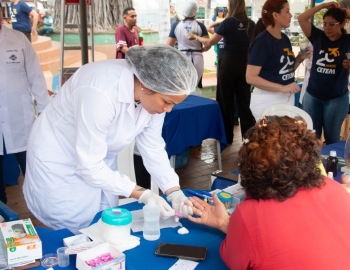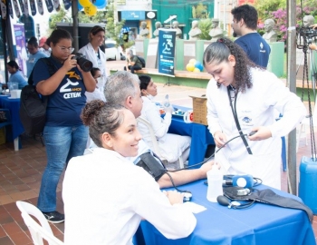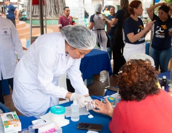 O curso técnico em Enfermagem foi um dos grandes destaques do dia. Com uma equipe organizada e motivada, os alunos realizaram 650 aferições de pressão arterial e 600 testes de glicemia capilar, orientando os visitantes sobre cuidados com a saúde, prevenção de doenças crônicas e hábitos de vida mais saudáveis. A população demonstrou grande interesse em conhecer seus indicadores de saúde, e muitos aproveitaram para tirar dúvidas diretamente com os professores presentes.