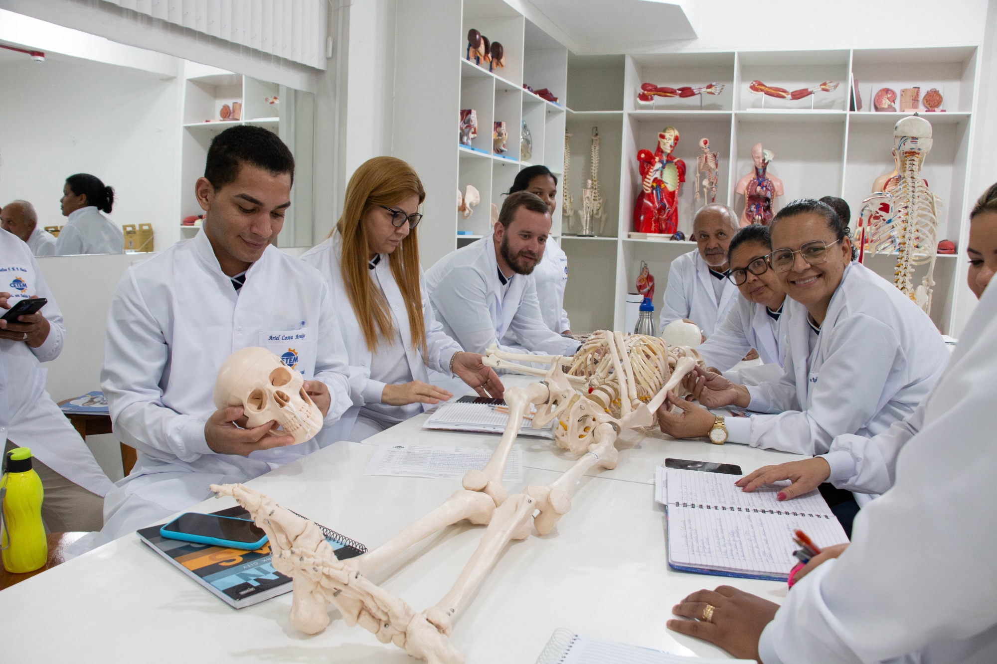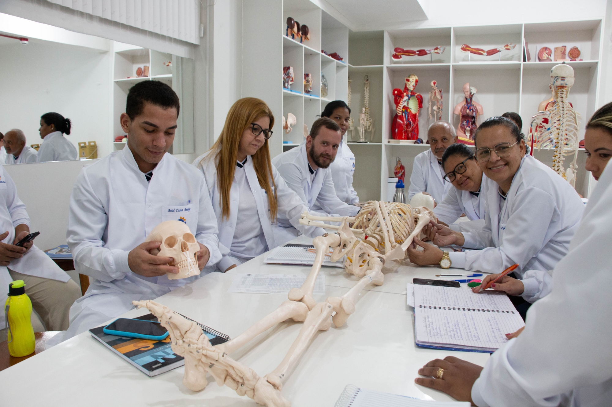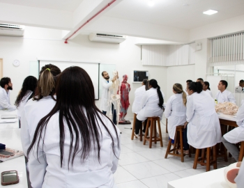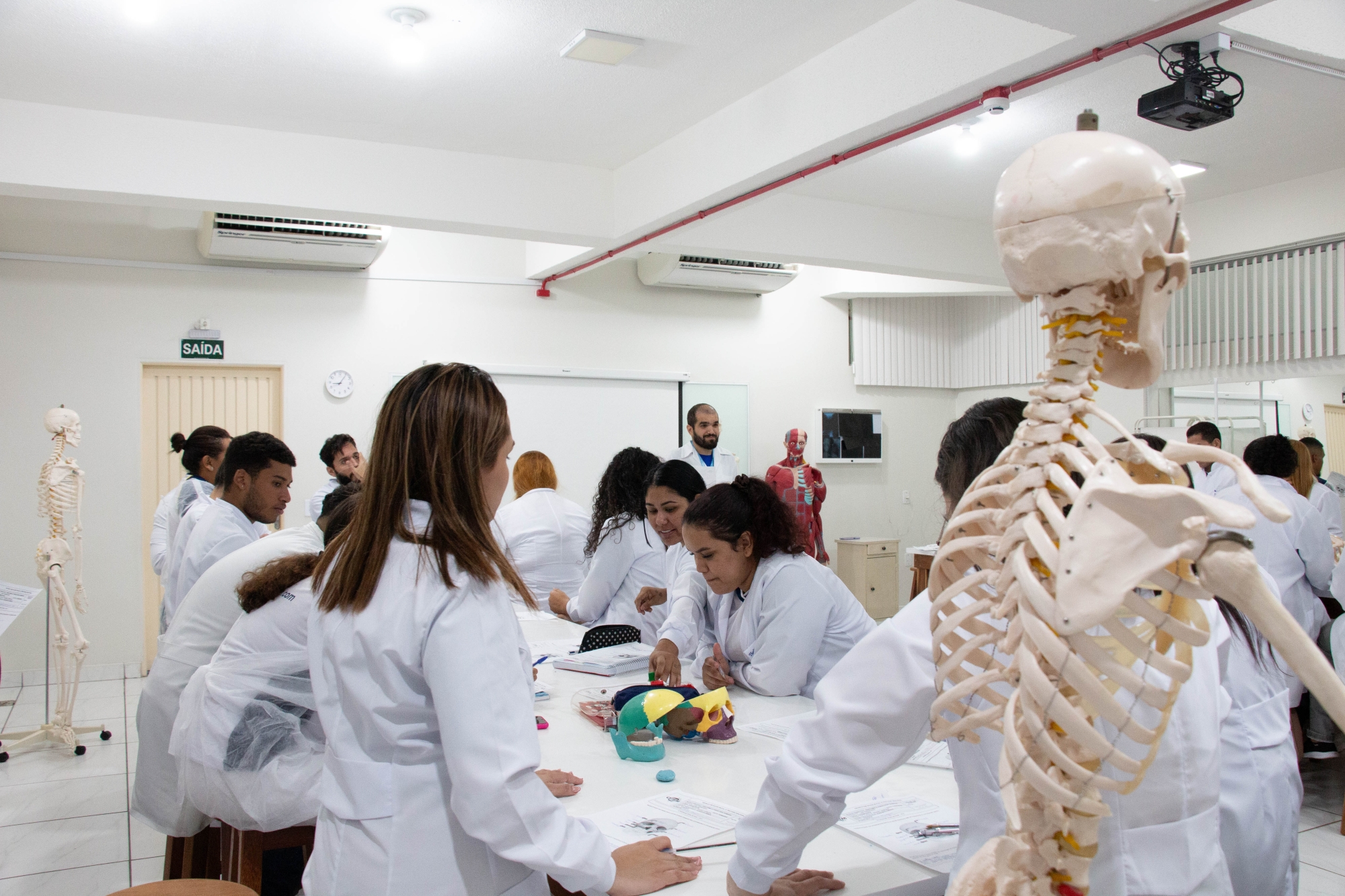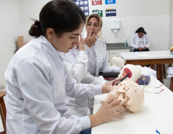- Aulas teóricas e práticas em laboratórios de saúde bucal, prótese dentária e anatomia