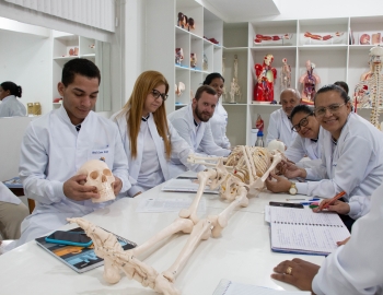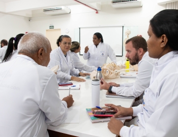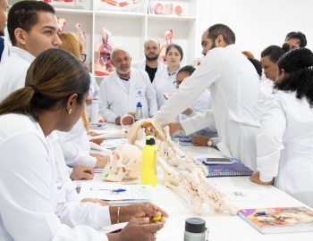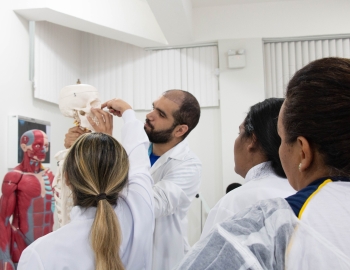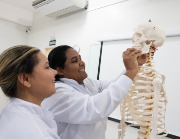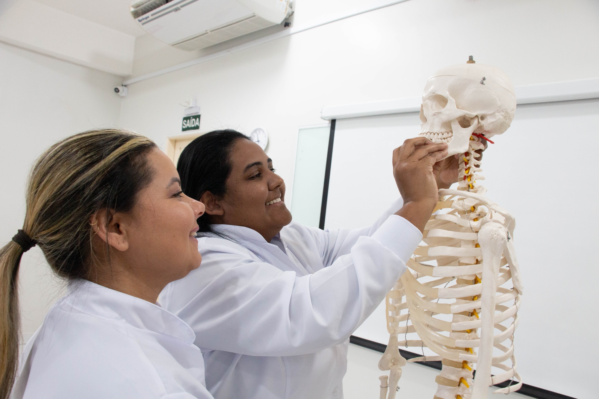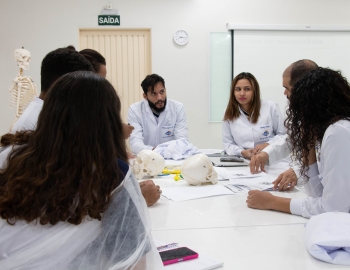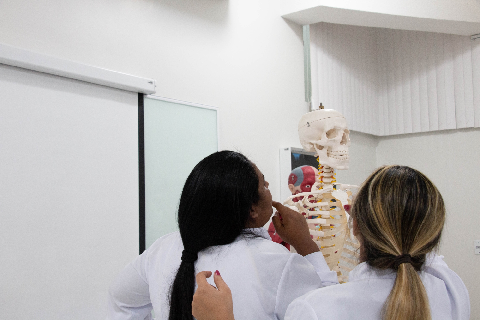 - Aulas teóricas e práticas em laboratórios de saúde bucal, prótese dentária e anatomia