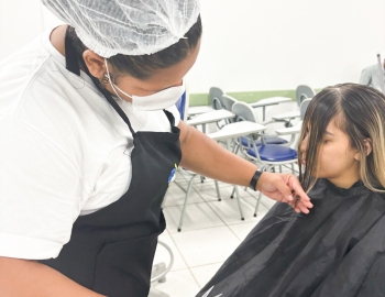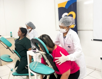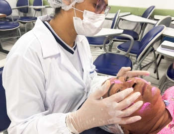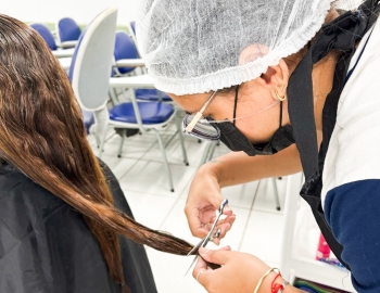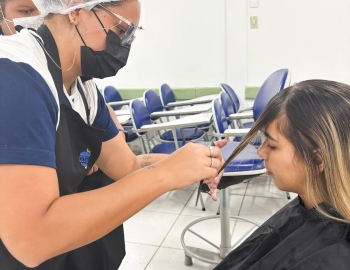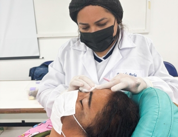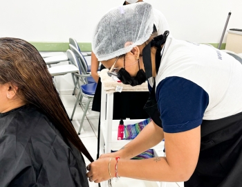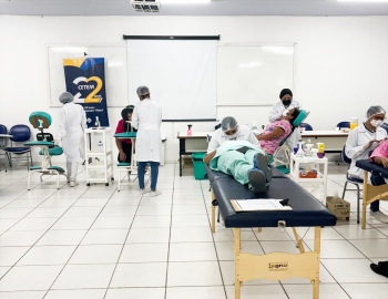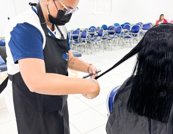 Em comemoração a Semana da Mulher, alunos do curso Técnico em Estética e cabeleireiro profissional realizaram nesta quinta-feira, 6 de março, no Hospital Geral em Cuiabá, ações como designer de sobrancelhas, quick massage, revitalização facial e corte de cabelo, orientadas pela professora Cemisa.