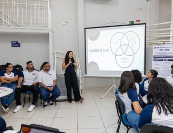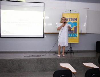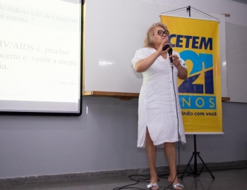 Dia 16/04 no período noturno, na unidade II do CETEM, foi realizada a palestra "Desvendando o HIV/AIDS: Entre Mitos e Verdades" pela Enfermeira Liney Araújo que faz parte da SAE - Cuiabá (Serviço de Atendimento Especializado).