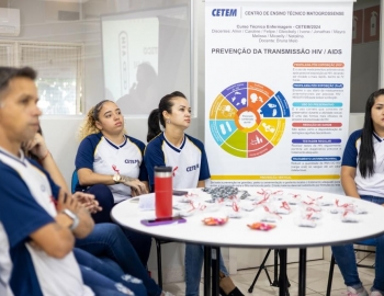 Aconteceu entre os dias 16 e 17/04 a ação do projeto integrador "Feira da Promoção à Saúde: Desvendando o HIV/AIDS" visando promover conhecimento e prevenção.