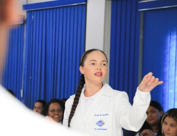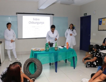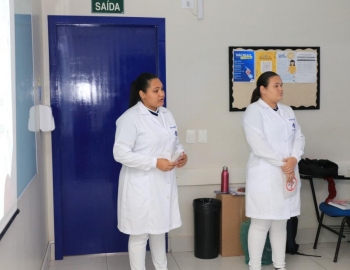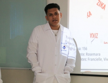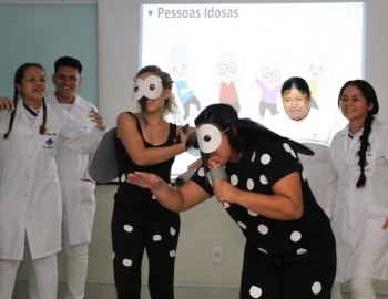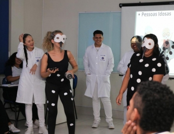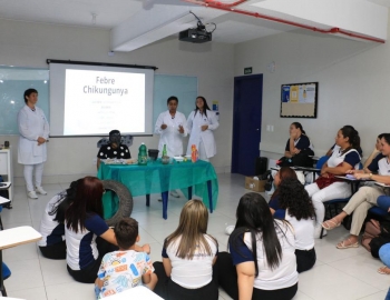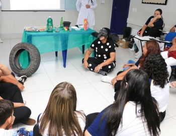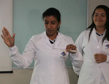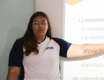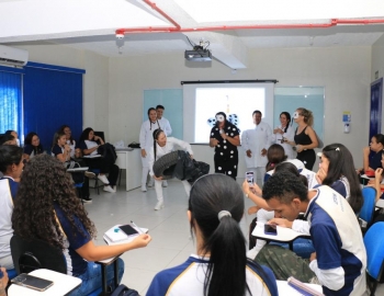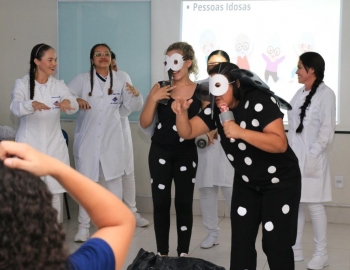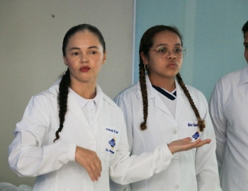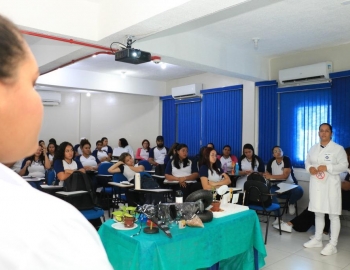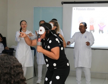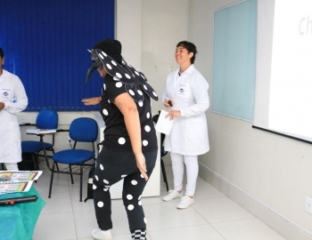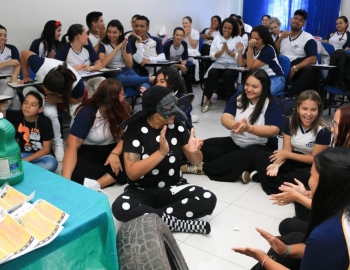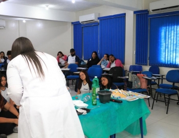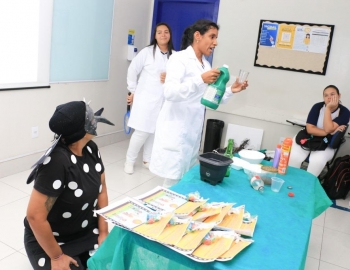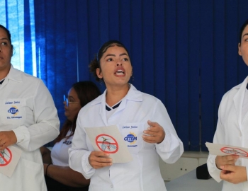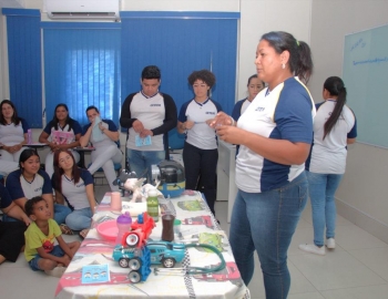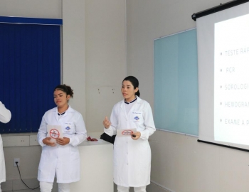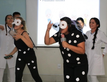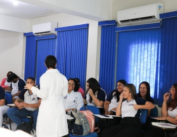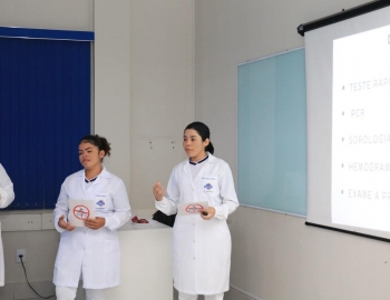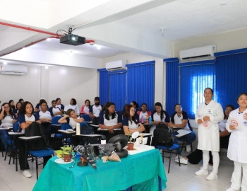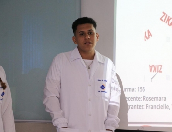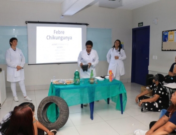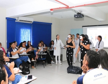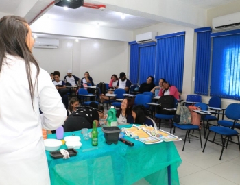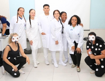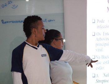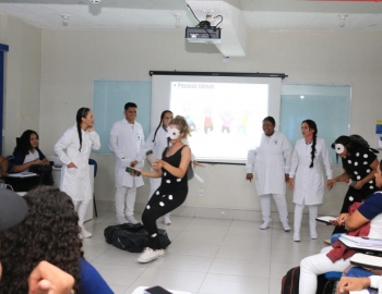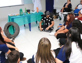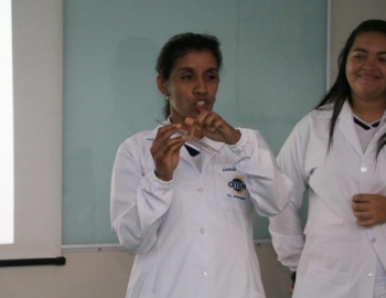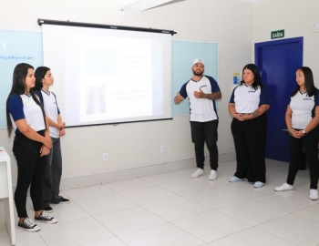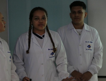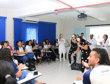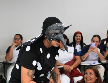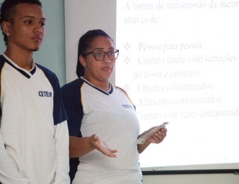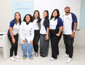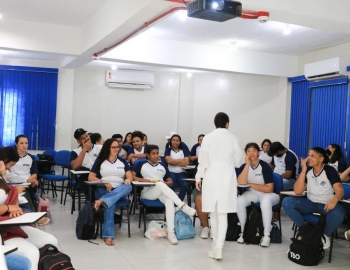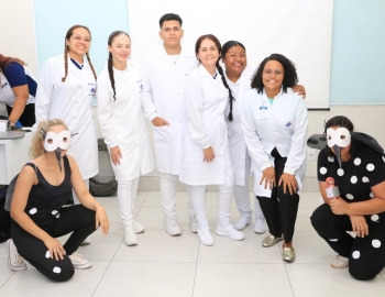 A turma 156 do curso Técnico em Enfermagem em apresentação do Seminário Projeto de Educação em Saúde. Sob a orientação da professora Rosemara, os alunos abordando diversos temas relacionados aos cuidados e prevenção de maneira dinâmica e descontraída.