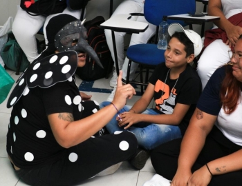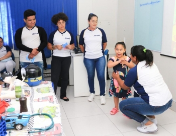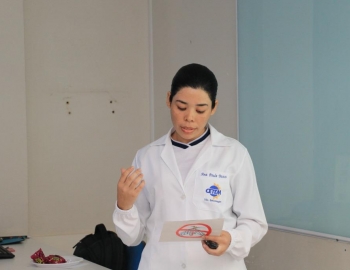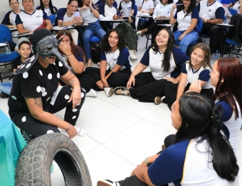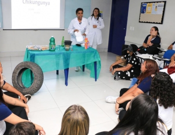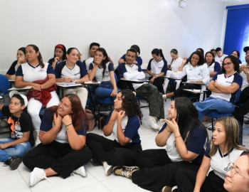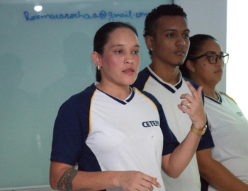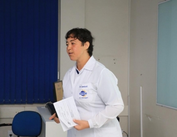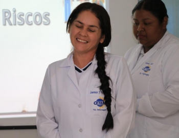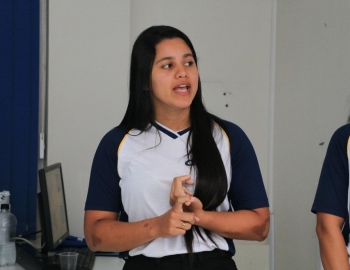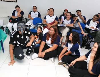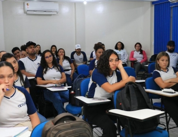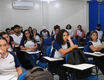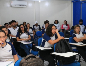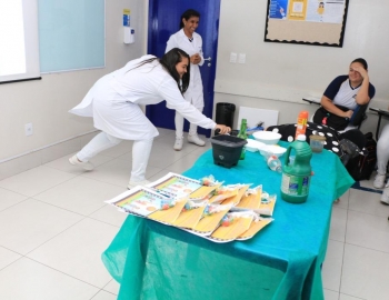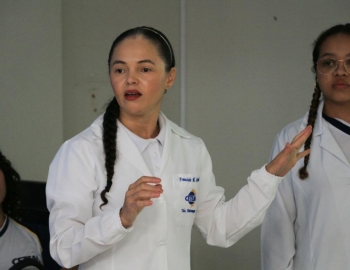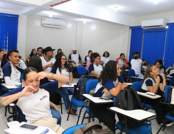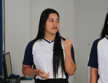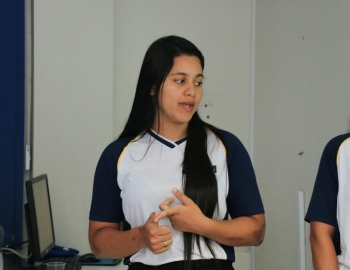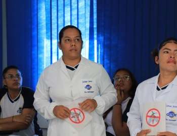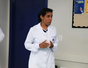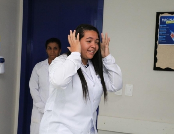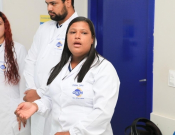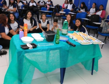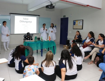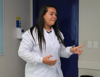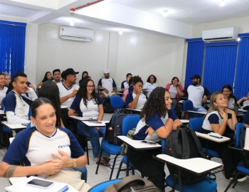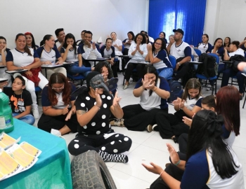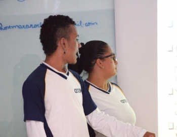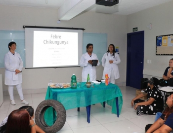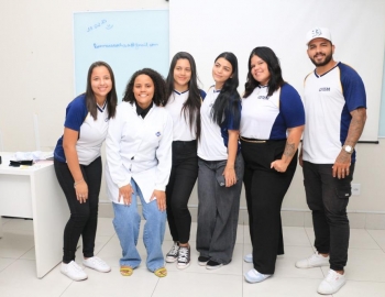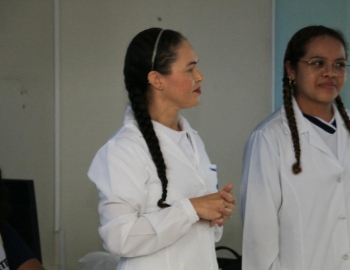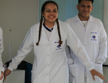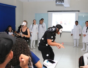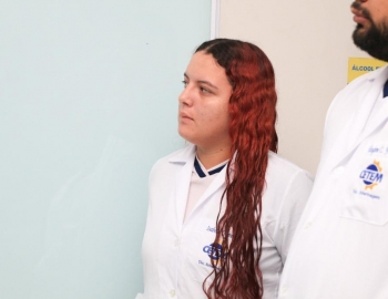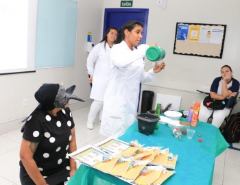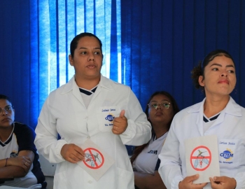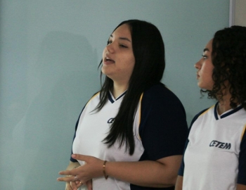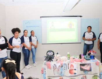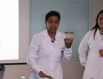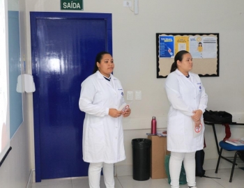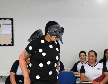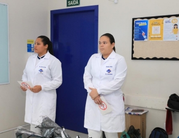 A turma 156 do curso Técnico em Enfermagem em apresentação do Seminário Projeto de Educação em Saúde. Sob a orientação da professora Rosemara, os alunos abordando diversos temas relacionados aos cuidados e prevenção de maneira dinâmica e descontraída.