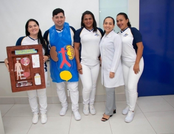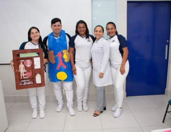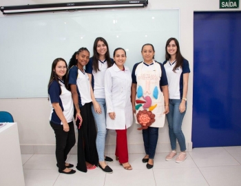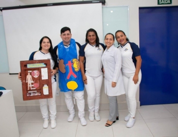 A turma 158 do curso Técnico em Enfermagem realizaram uma apresentação sobre sistema do corpo humano, orientados pela professora Bruna.