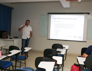 Palestra do Bioquímico Leonardo Marin sobre doação de sangue e tipagem sanguínea