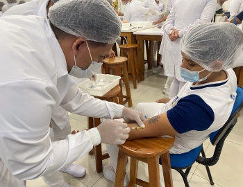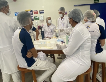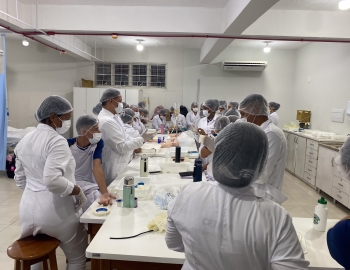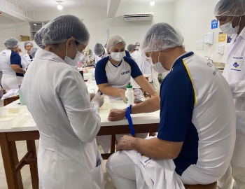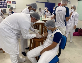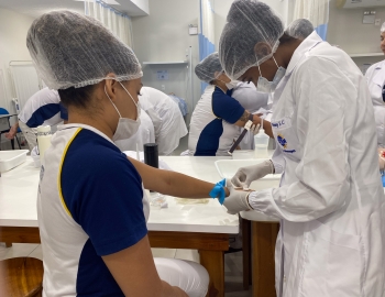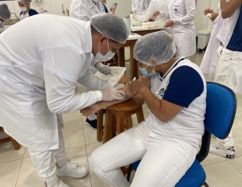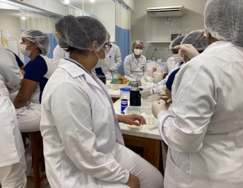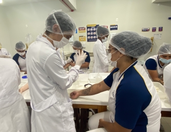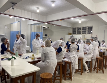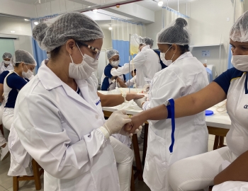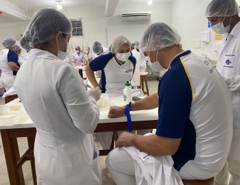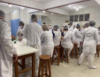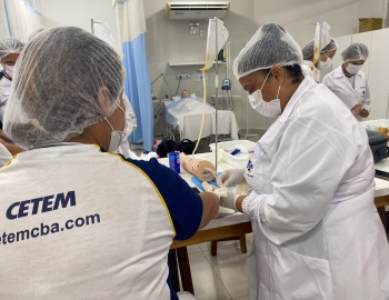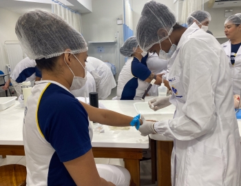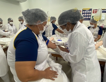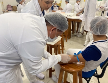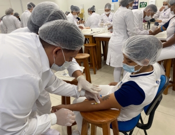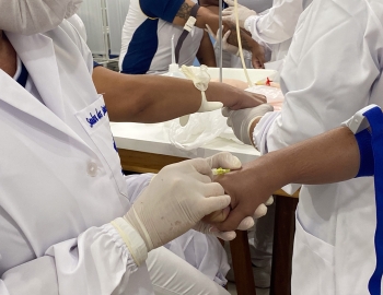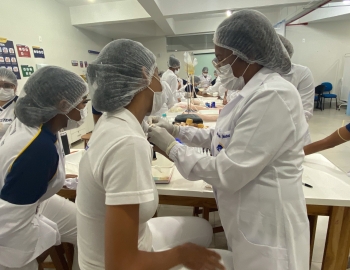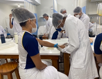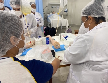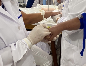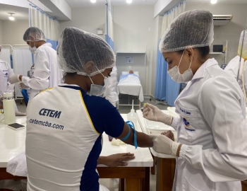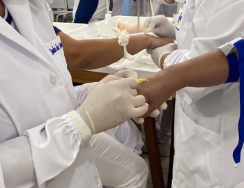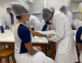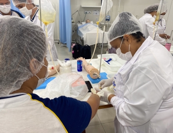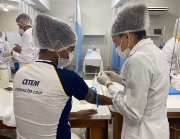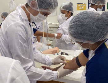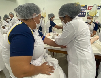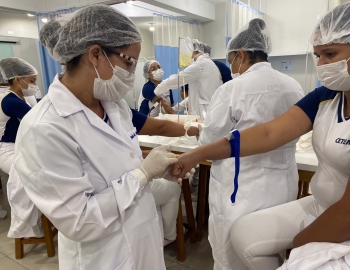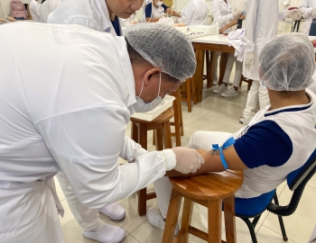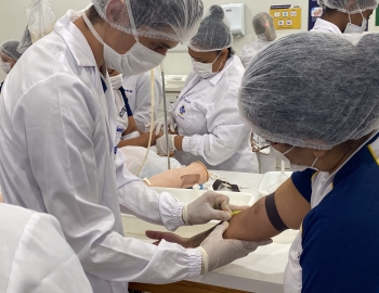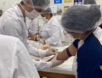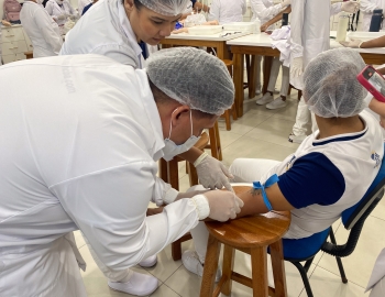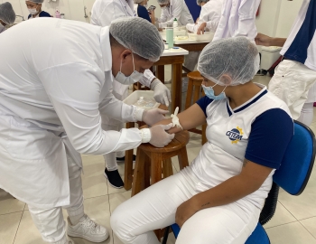 A turma 301/302A do curso Técnico em Enfermagem em prática do bloco Saúde Mental, aula sobre punção intravenosa, orientados pela professora Camila. As prática são necessárias e importante para o estudante para que aprimorem seu conhecimento e sintam segurança quando entrarem no mercado de trabalho.