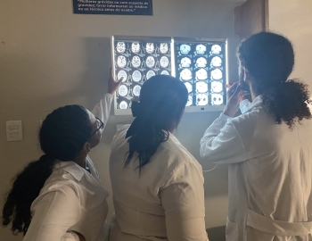A turma 306R do curso Técnico em Radiologia 'mergulhou' no mundo da anatomia radiográfica e patologia! Nesta aula prática com o professor Miguel, eles aprenderam a identificar estruturas anatômicas e alterações patológicas em imagens radiográficas, habilidade essencial para o diagnóstico preciso e o cuidado com o paciente.