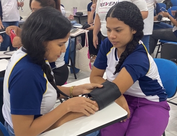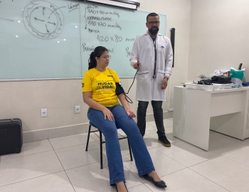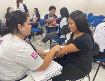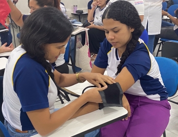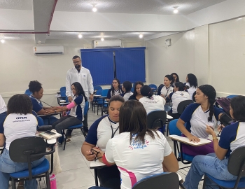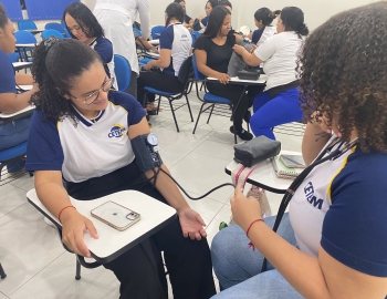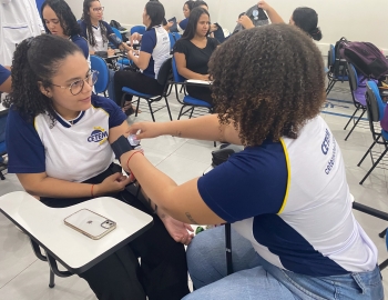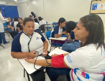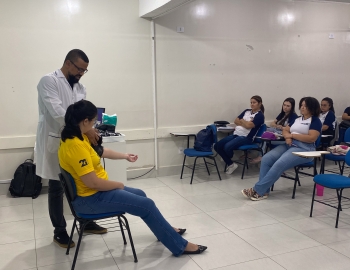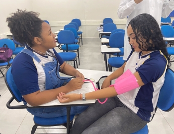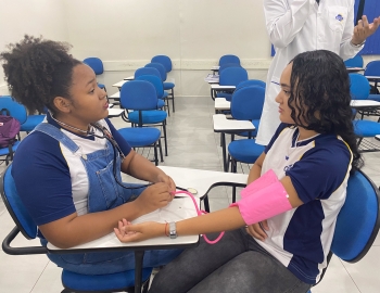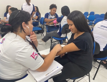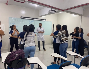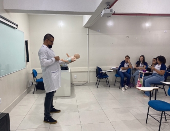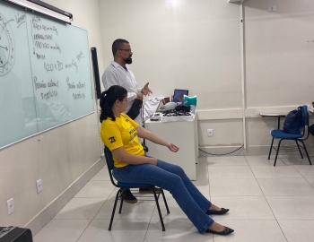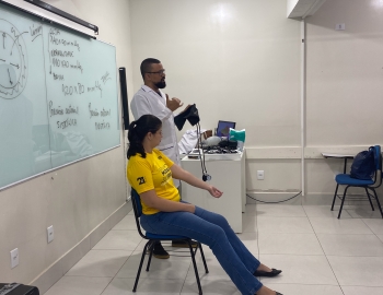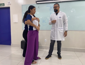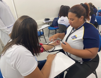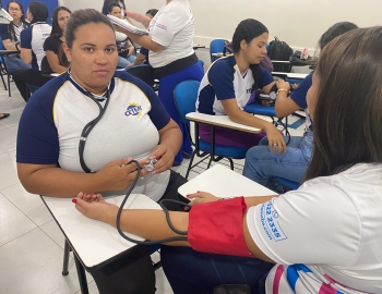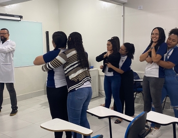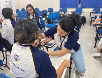 A turma 640 do curso Técnico em Estética aproveitaram a aula sobre primeiros socorros ministrado pelo professor Geovane, do curso Técnico em Enfermagem. Durante a aula, orientados pela professora Andressa, os alunos aprenderam técnicas como desengasgo e aferimento de pressão arterial. Uma aula dinâmica e produtiva.