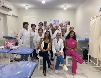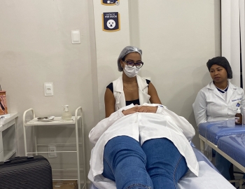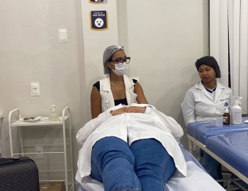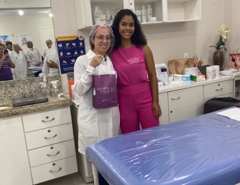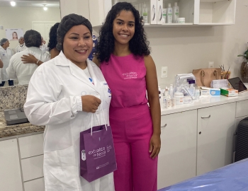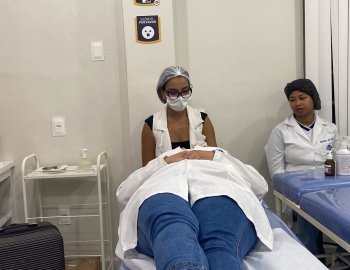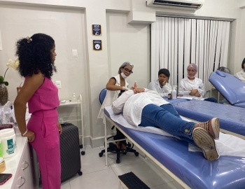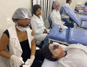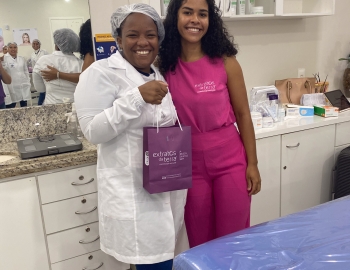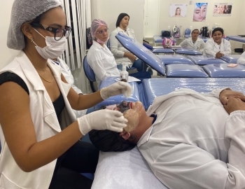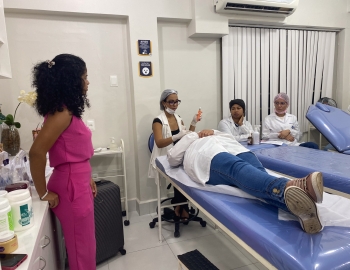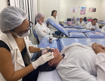 A turma 606D do curso Técnico em Estética em workshop sobre tratamentos corporais e faciais com produtos da Extrato da Terra. Um aula dinâmica e produtiva, ministrados pela esteticista Viviane e a representante da Extratos da Terra Lais. As alunas estavam sob orientação da professora Marly.